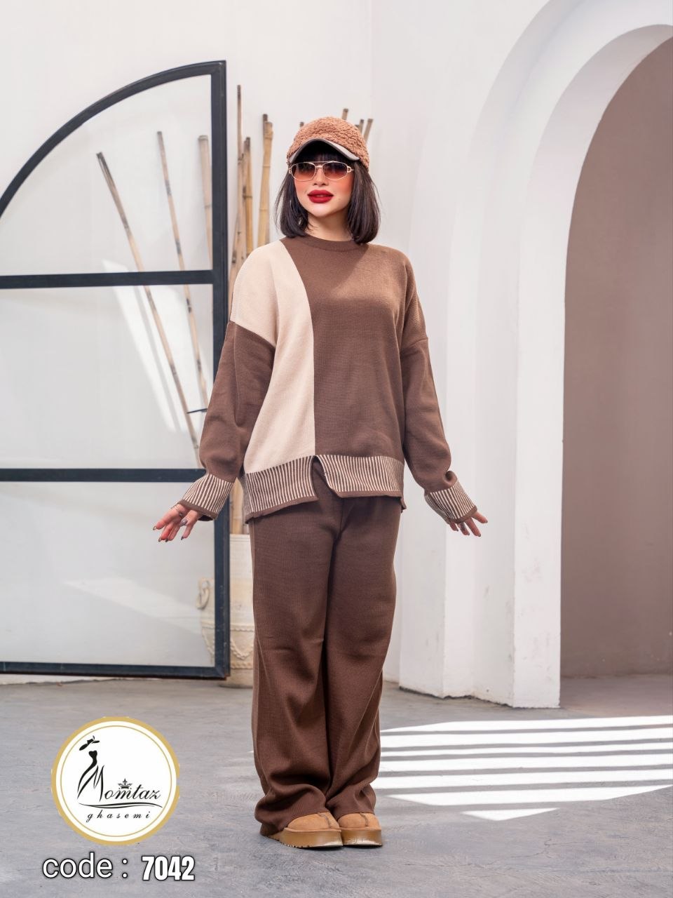 ✅کالکشن پرفروش ست بلوز شلوار بافت جلو چاک دار دمپا خطی مدل جدید 🌺