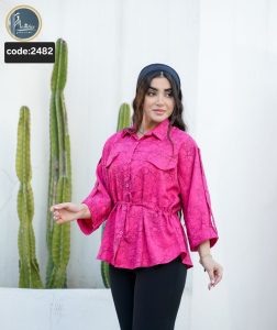 شومیز کمر گت جیب نما آستین پاکتی لنین اسلپ